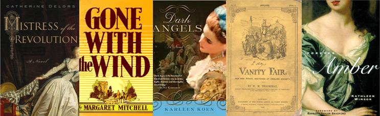 we’re talking historical fiction. by which i also do not mean harlequin romance, but rather the mighty gone with the wind and vanity fair, the epically sexy forever amber, and their less literary sisters from contemporary writers like karleen koen, et al.