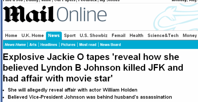 case in point- on sunday, a british tabloid recycled a story that, in america, has fronted the national enquirer time and again. by monday, it had traveled across the pond into the american mainstream press and we were all wondering if jackie was sleeping around and promoting conspiracy theories better peddled by oliver stone. never mind that every article sourced the daily mail and abc promptly denied the reports- the story had wings and it took off.