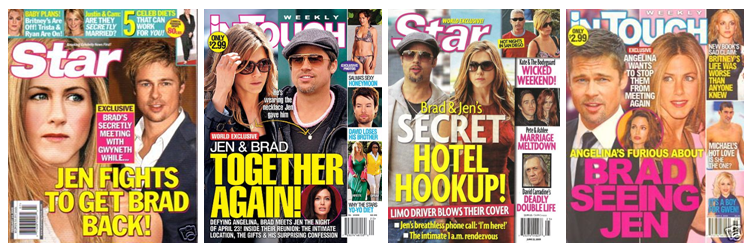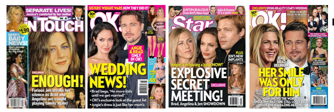 this is difficult because (a) the pitts and jolies and anistons of the world do press junkets and say provocative things, and (b) their friends and publicists are, in turn, all blabbing to the magazines. nearly all modern celebrities are actively engaged in shaping their own narratives, so there is a veneer of truth. it’s just not the whole truth and it’s couched within a highly subjective version of events.