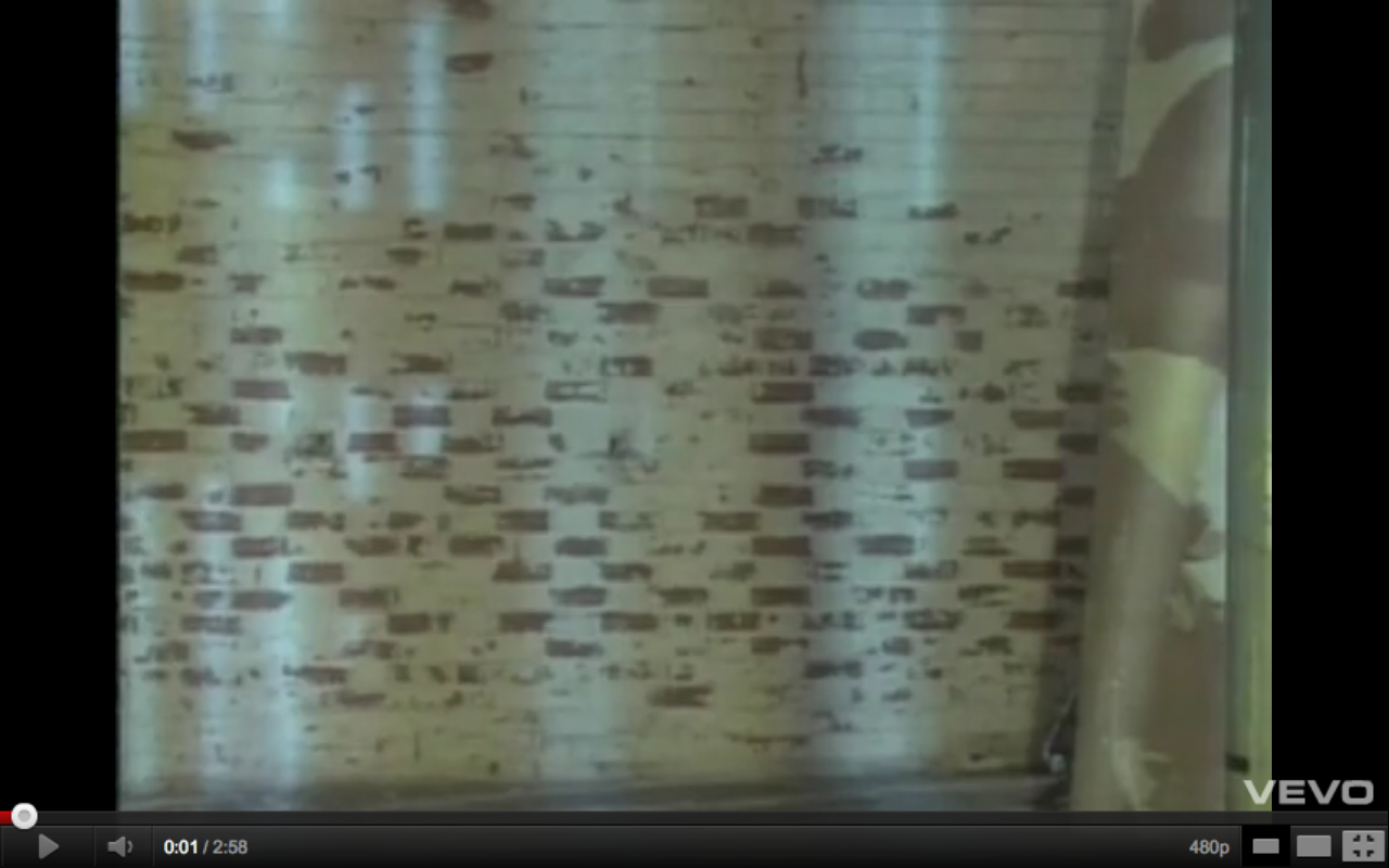 it is a shot of reebok aerobic shoes quick-stepping on concrete flooring that is presumably- if we’re working within a context of logical narrative and spacial reliability- located in close proximity to the badly painted brick wall.