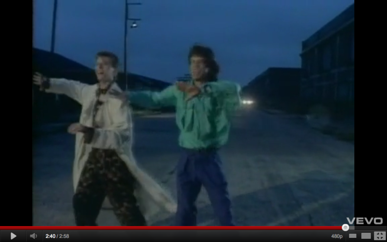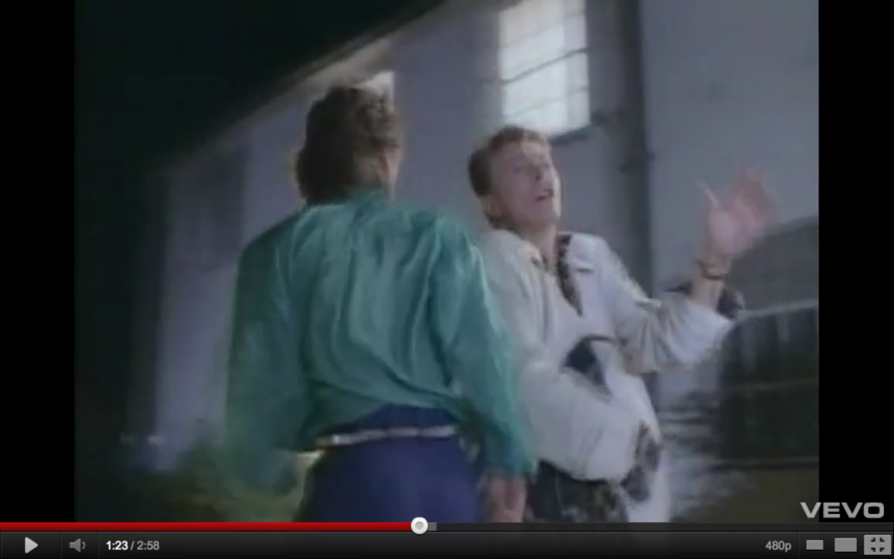 if you look at it through a certain lens (ie. your child of the 80s glasses), “dancing in the streets” is all about peer pressure. over these 2:58 minutes of coercion, every excuse is trotted out for why we should be dancing. it doesn’t matter where we are or how we’re dressed (though this entire video negates the truth of that), records are playing and everybody’s laughing and singing and we’re being total stick-in-the-muds because we don’t wanna.