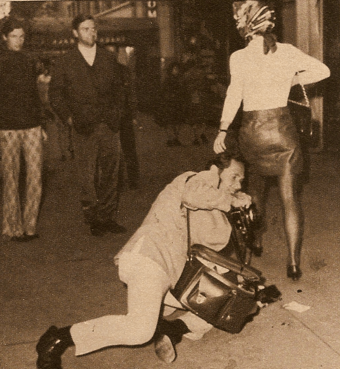 much like how when they married, the priests were as pissed by the couple’s mixed faiths as they were by the shortness of jackie’s skirt, the scandal here has less to do with the main event (jackie and ari seeing a blue movie) than the ancillary details (they did so on a sunday afternoon! blushes!). add to that the fact that the former first lady may have whipped out some martial arts against a photographer as she left the theater and you’ve got a formula for a frenzy.
