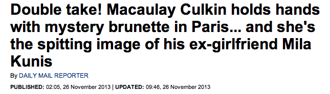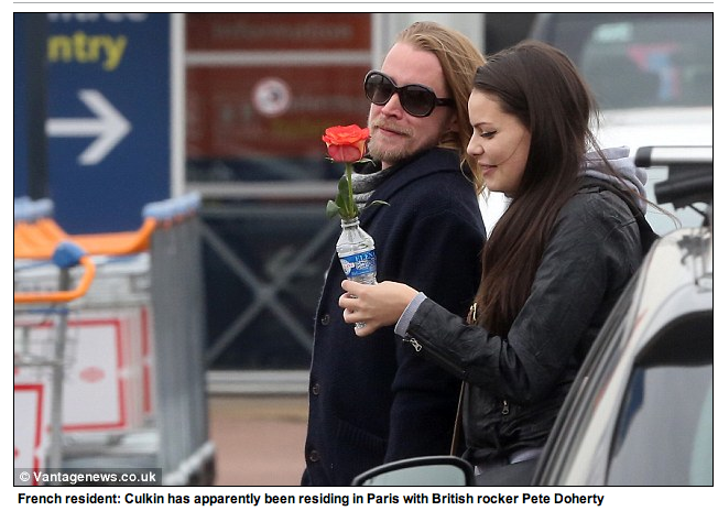 so yeah. macaulay culkin is in paris, smiling and holding hands with a girl who has brown hair. all is well with the world. except… this caption.