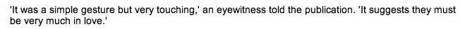 well, obvi. i mean, they’re wearing matching nailpolish and if that isn’t a sign of true love, i don’t know what is. plus, he’s smiling. but the real proof in the pudding lay in the fact that he has bought his ladyfriend a rose and stuck it in a bottle of water: