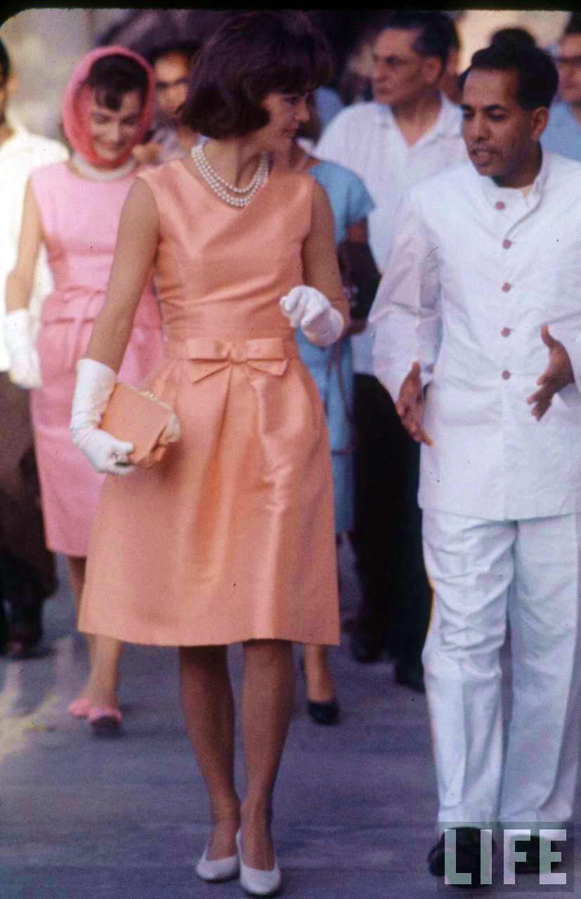 Jacqueline Kennedy Attending Opera in Powder Blue Evening Dress and a LOT o’ pink…