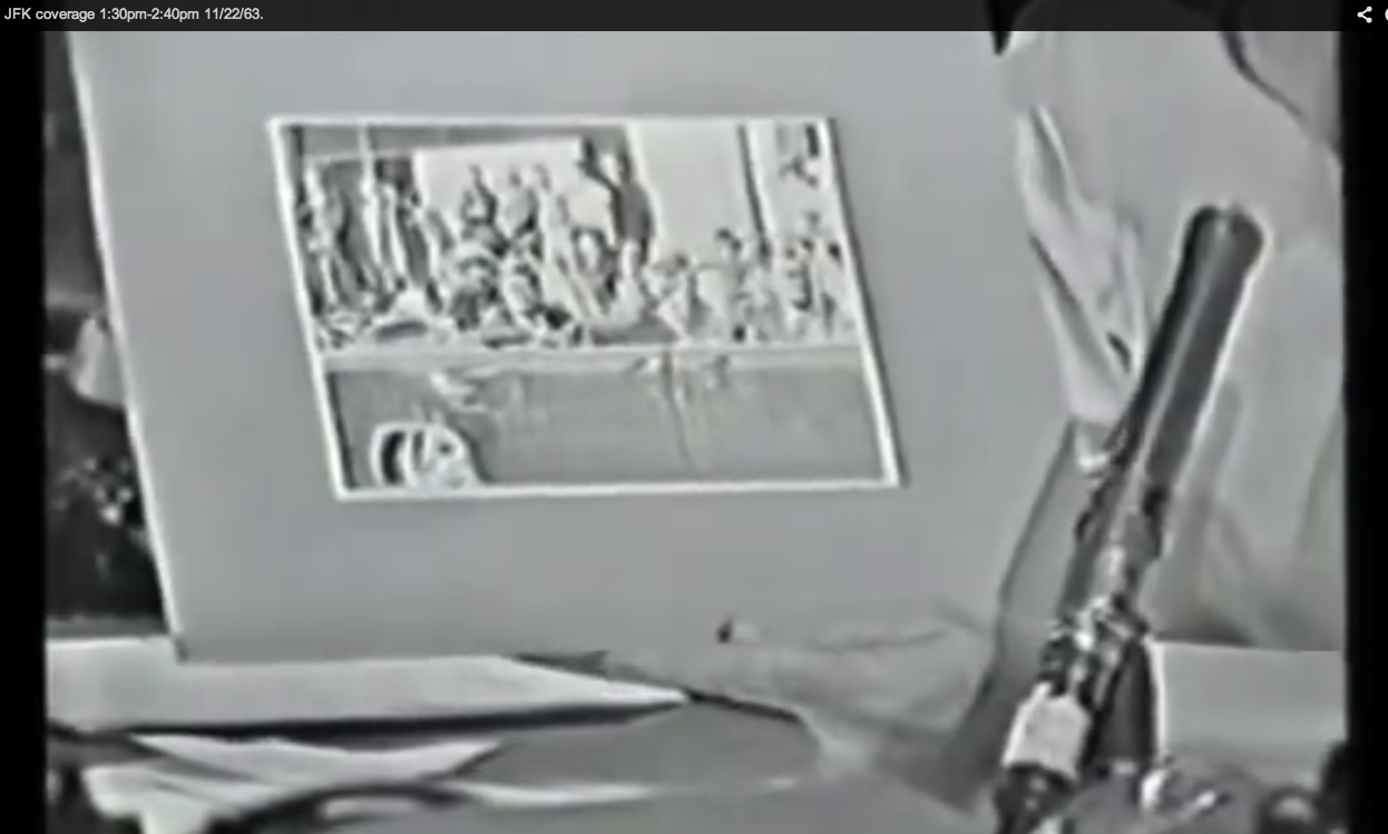 the best visual aid cronkite offered viewers was an 8×10 black and white glossy of the kennedys in the motorcade prior to the shooting, which he then held up as the cameraman zoomed in on the image.