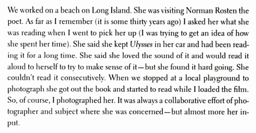 she struggled with it, as we all do. eve arnold, the photographer who shot her reading on the playground, recalled: