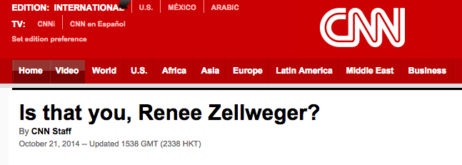 first, renée zellweger’s face appears to be the new ebola. as in, all of the hysteria and panic and WHATISHAPPENINGWITHTHEWORLD ITISFALLINGAPARTAROUNDUS feelings around ebola seem to have- WITHIN HOURS- siphoned off onto the issue of renée zellweger’s face (which has, in fact, looked this way for about the last year).