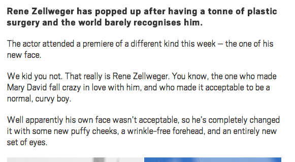 second, the story of renée zellweger’s face is, in huge part, a story of people’s response to the story of renée zellweger’s face.