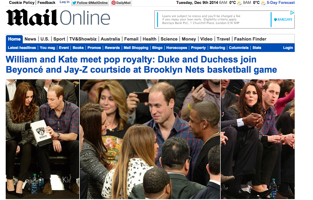 it goes the other way too, which is what we see here. and so, with will and kate and this daily mail story of their visit to america, there’s spillage of the everyday- ie. the protests around the garner and brown cases, which are occurring at the local level in a number of cities right now– into what is essentially a celebrity story.