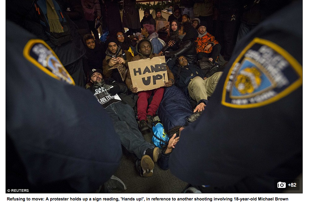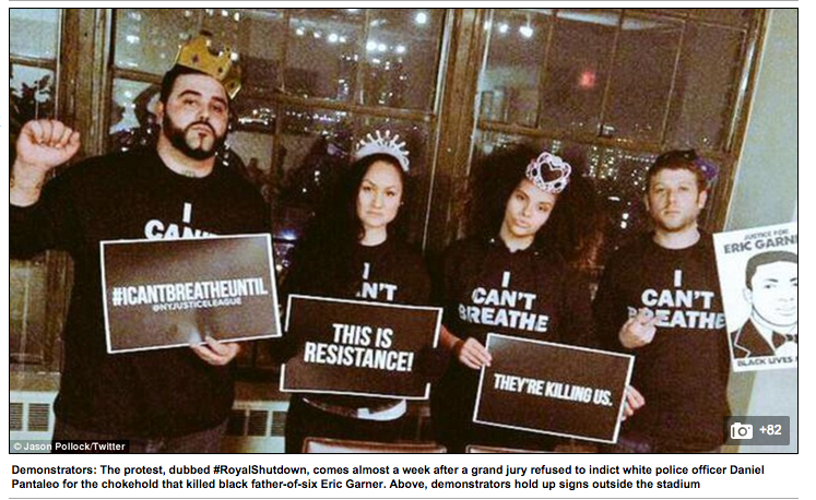 this is news-lite, mind you. there are minimal details. you wouldn’t learn a lot about the garner and brown cases from the daily mail‘s photo captions, and the mail doesn’t go into the protests in-depth, or really even in shallow, as it’s not noted that they’re known as “die-ins”- a phrase that seems ripe for the melodrama of the daily mail, one which the daily mail is aware of (per this article critiquing the inability of protesters to play dead because they keep checking their phones where the mail has CSIed a bunch ‘o photos to illustrate this), but also a phrase which maybe doesn’t fit alongside pics of the duke and duchess.