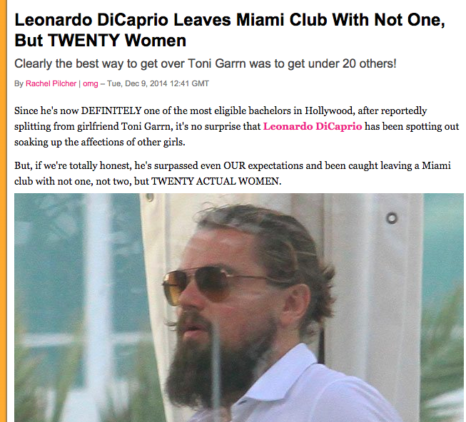 it seems only cosmopolitan has questioned the validity of this report of leo taking 20 women home. other outlets have simply printed it with glee. but cosmo– seldom the voice of reason and yet seemingly the lone one here- asks: