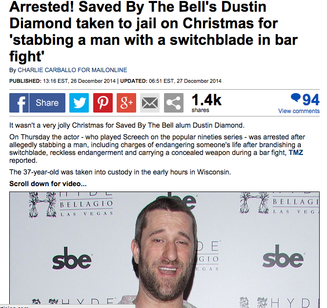 i was reading the guardian‘s report aloud to my mother as a spot of boxing day entertainment. it begins innocuously enough: “Man once known as Screech charged with possession of switchblade, carrying concealed weapon in Ozaukee County.”