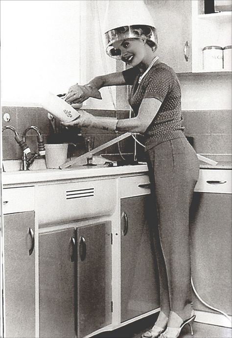 but she took pains to place special emphasis on the hair drying phase, claiming, “Time spent under a dryer is not necessarily wasted,” because women used it to write and read.