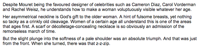the daily mail is usually high on pictures, short on analysis, so it’s rather inexplicable that we get 772 words more here. it is perhaps not surprising, by this point, that they are dreadful and incredibly derogatory towards women’s bodies in middle age.