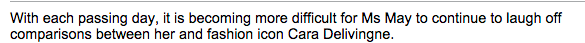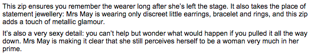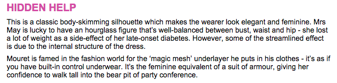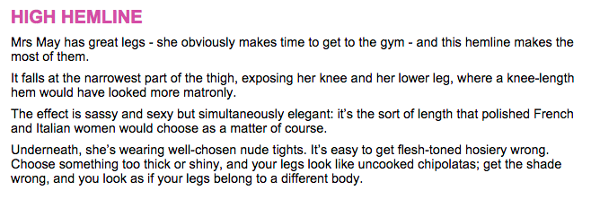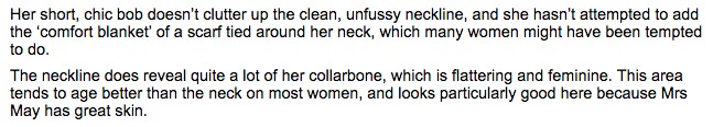 it’s worth noting that the daily mail seems to have a bizarre preoccupation with may’s cleavage and her clothes. a preoccupation which, in 2013, gave us this amazing assessment: