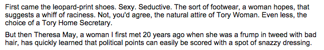 which brings us to The Now and the mail‘s 7 october report on teresa may’s dress.
