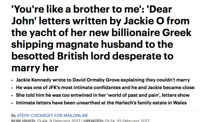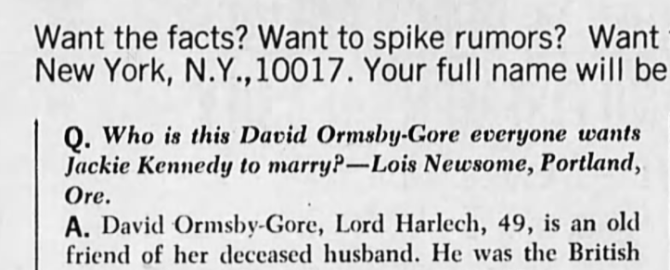 please note: i am in NO WAY exaggerating this. i actually myself had underestimated it until giving a talk on jackie in london a few years ago to an audience of people aged 60+ and literally all they wanted to talk about was how the press had misled them about jackie’s love for david ormsby-gore.