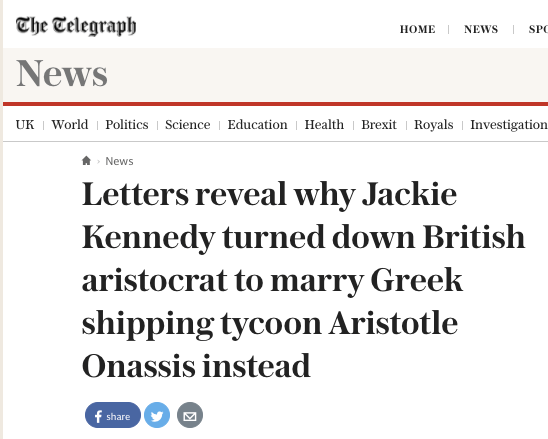 she marries onassis instead. (that last headline, ya’ll, is 24 ct. gold.)