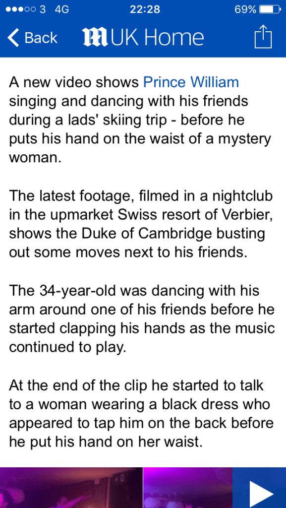 are you aware that prince william was in verbier this past weekend? is this a story being covered outside the daily mail?