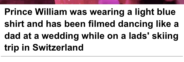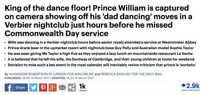 which is a combination of this being the narrative the mail has given the duke of cambridge, the duke of cambridge generally appearing not to do a lot ‘o work, and the duke of cambridge willfully pursuing winter life choices which result in similarly bad optics, further reenforcing the narrative that he doesn’t do a lot ‘o work.