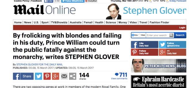 this plays into a preexisting narrative of “william is workshy,” which the mail busted out at almost exactly this same time last year.
