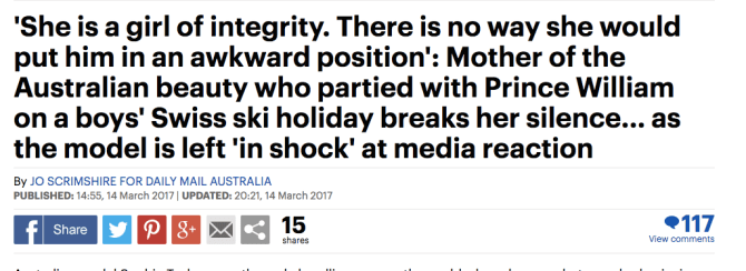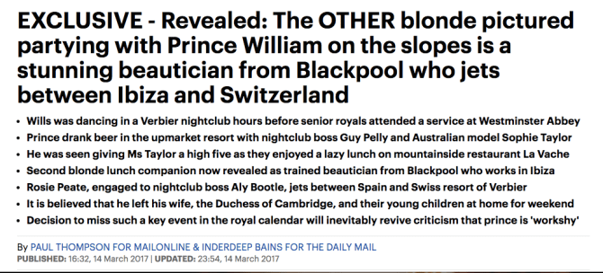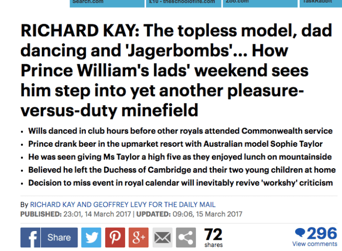there is, of course, the standard daily mail negging of the woman with whom william was photographed exchanging a high five at a lunch where alcohol was on the table.