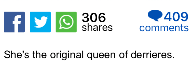 which seems a contestable historical point (uhhhhummmmm… J.LO.) but one probably not worth making as it’s more than a little sexist in itself, but really, were we aware that this was an official post? Queen of the Derrieres.