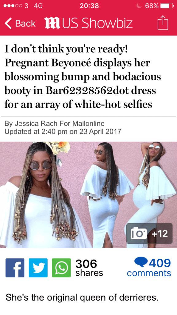 i know. i know. you are like, but oline! this is the daily mail! this is an article about a pregnant, black woman, and casual misogyny, racism and objectification are what the daily mail does best!
