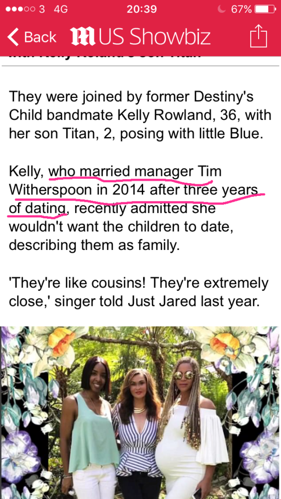 the human being part of me resents that, in the context of this article, kelly rowland is the only one given a speaking part and it is three paragraphs on motherhood, whether she wants to have more children, and whether her two-year-old son and five-year-old blue ivy should date.