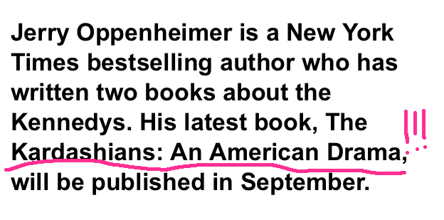 first things first, just YESTERDAY i lamented the lack of kardashian biographies and lo! the lord giveth: