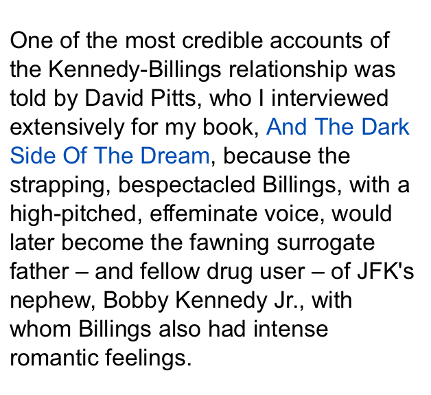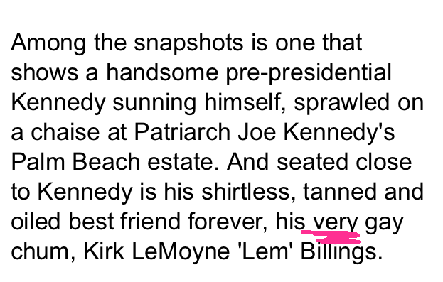 and because he used drugs and was gay and hung out with RFK, jr., he could be said to have “intense romantic feelings”? for RFK, jr.? and so he… would’ve also been lovers with JFK? maybe? is that what this is saying?