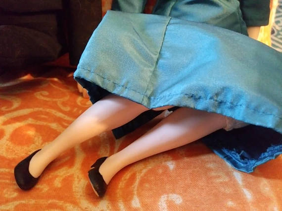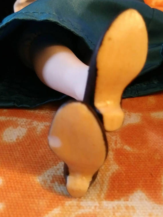 we have jackie doll’s legs coyly tucked beneath her as they taught us at ballet class: