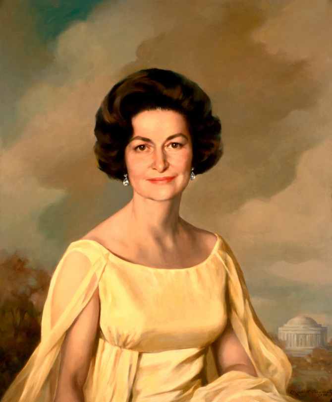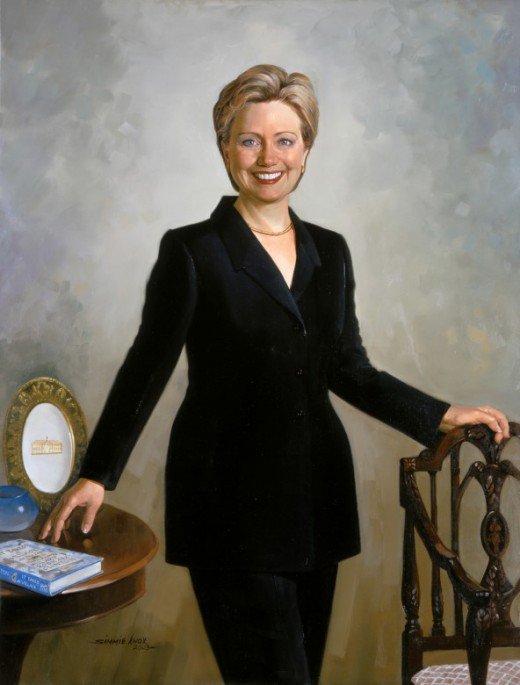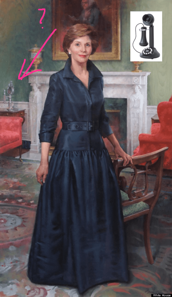 in this sense, HRC’s portrait represented a departure from the traditional first lady portrait in that she was portrayed in more of an office setting than usual. not an actual office, mind you, but she was at the very least dressed as if departing for work. the women prior were more often portrayed as inactive and in fancy dress.