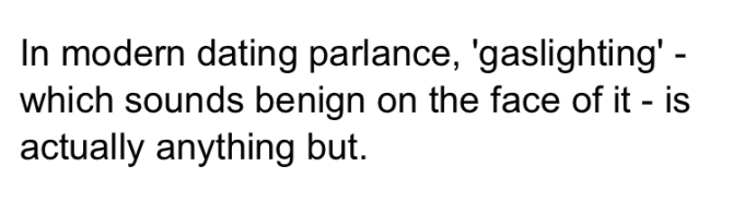 but it also frames gaslighting as a somewhat normal aspect of so-called “modern dating,” normalizing it without offering any statistics on the pervasiveness.