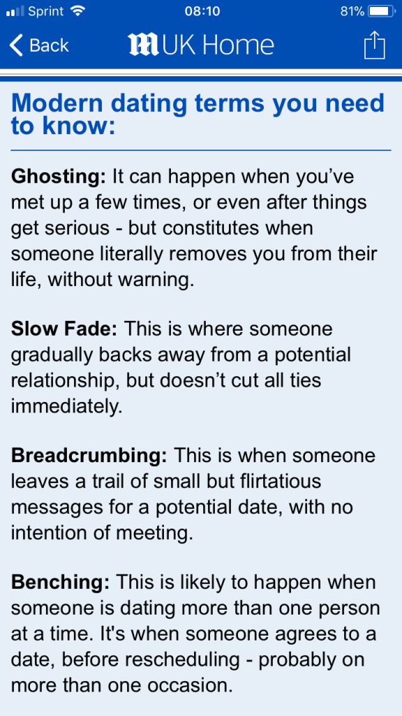 so that gaslighting is framed as something we’re all sort of doing now, along with ghosting and all these other things i- someone involved in “modern dating”- had never heard of: