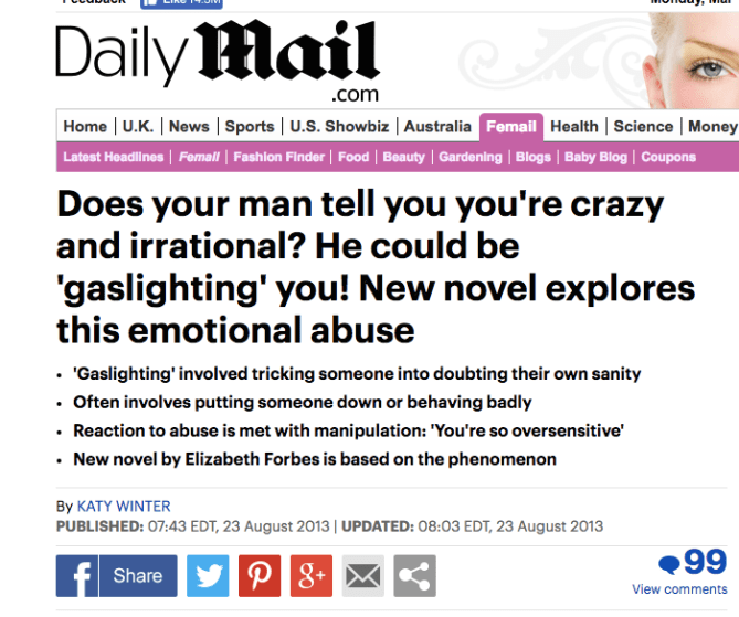 just to bring in a little historical context, the daily mail has discovered the phenomenon called gaslighting before. back in august 2013.