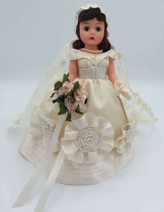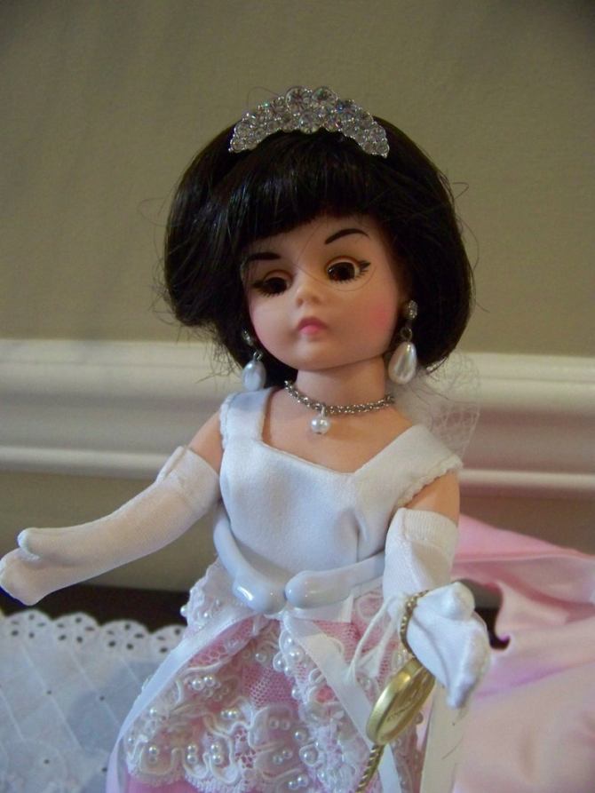 furthermore, i like their– by whom i guess i mean the designers of madame alexander’s– assessment that the actual rosettes on the skirt were not extra enough IRL (which, if we’re being real, they were pretty effing extra to begin with) and so they needed to go bolder here.