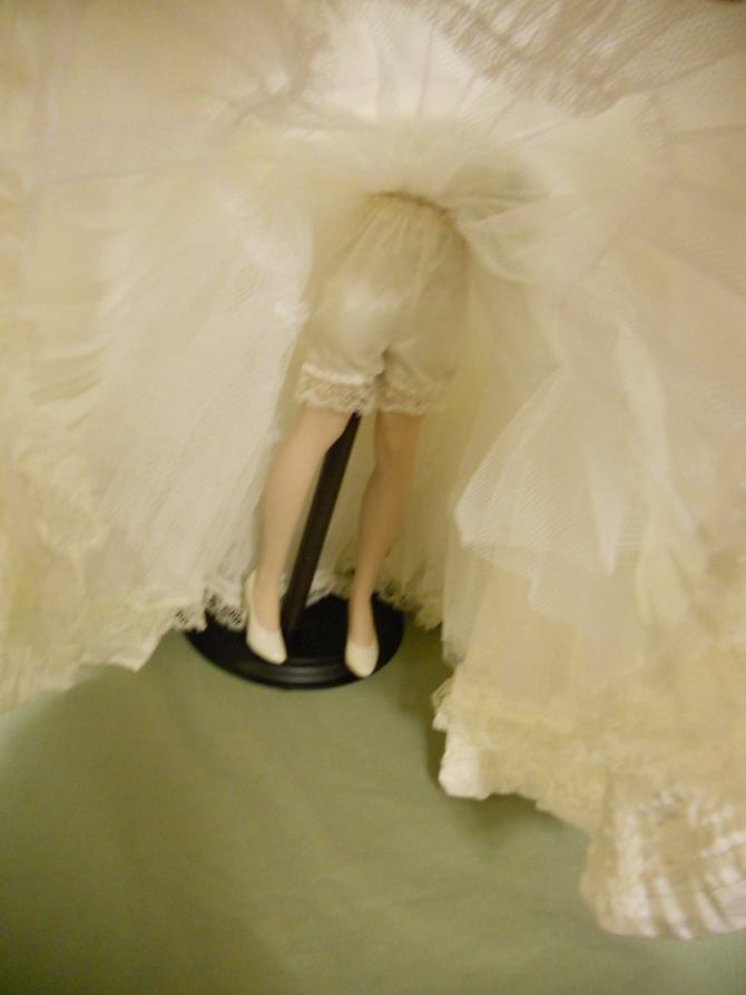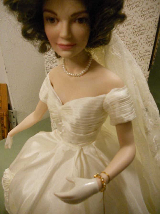 we, of course, learn from this that franklin mint wedding doll jackie has both painted shoes and bowed legs.
