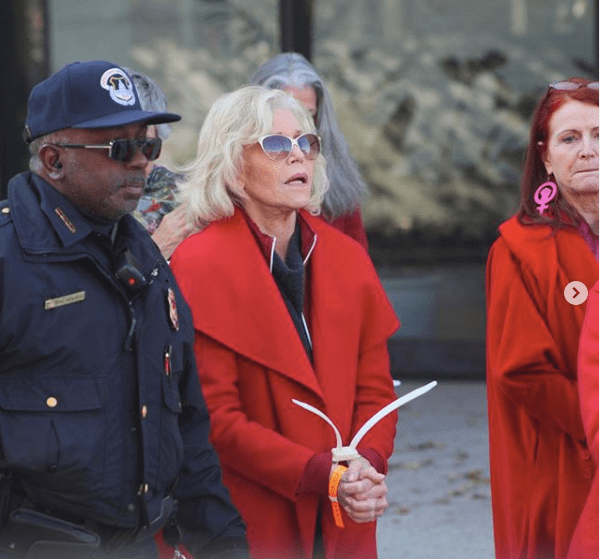 also, has devastating lounging jackie recently been arrested? is that why she has the plastic handcuff?