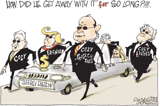 you’ve maybe by now heard of a man named jeffrey epstein? a man who, according to ariel levy’s reporting, was trafficking and assaulting upwards of TWELVE girls per month for the last twenty years. the last twelve years of which EVERYBODY KNEW. (for more on that, here’s vicky ward’s reporting. here’s the guardian‘s reporting. here’s the miami herald‘s archive of their investigative reports on epstein.)