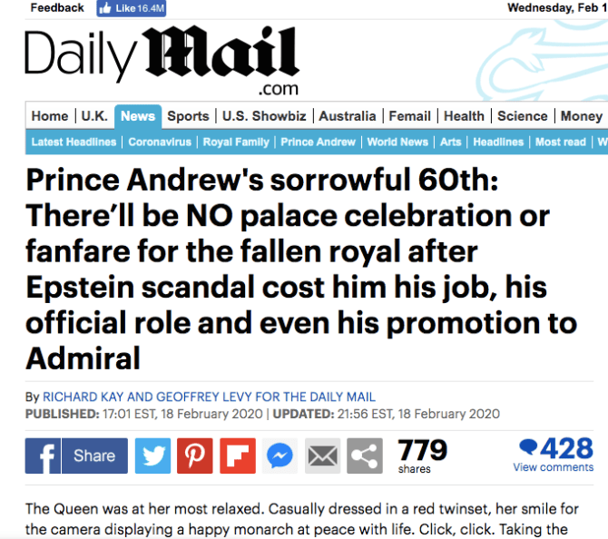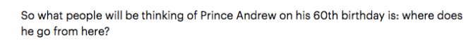 prince andrew is 60! an age by which we would most of us hope to know better and to be at a point of taking responsibility for our lives. alas, royalty are not #justlikeus.