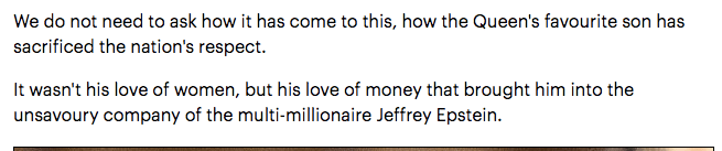 so, here’s the story: prince andrew continued to affiliate with a known sex trafficker/rapist, looooooong after that fact became known.