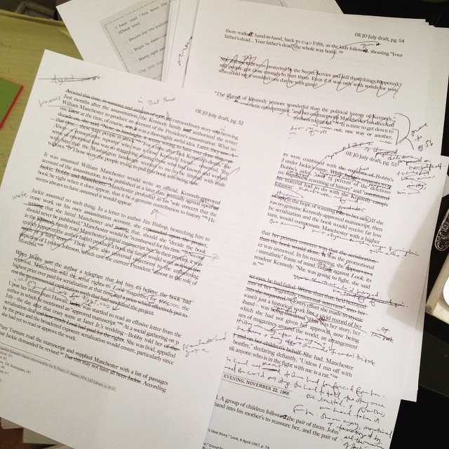 this calls to mind another memory… in college. i’d won some award, and we were all invited over to some professor’s home for tiny sandwiches and sparkling water. and my parents were there. and we got talking, maybe to the medievalist– whose class i’d take the next spring, solely on the basis of this encounter and my father’s evaluation of him as “a real professor”– about my career path, and my father told him that i wanted to be an editor, like jackie onassis.