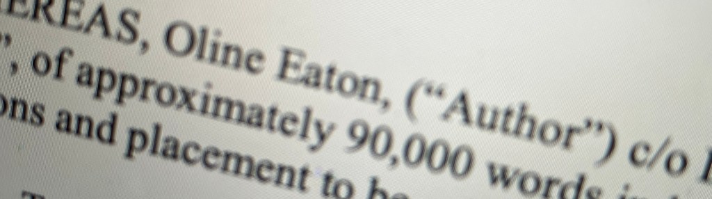 the contract arrives, at long last, five days before my manuscript is due (lol). and there i am: Oline Eaton (“Author”).