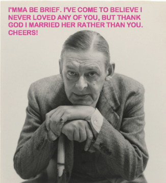dear people, yesterday, mister thomas stearns eliot spoke to us from the beyond and revealed himself to be the petty jackass we always thought he was.