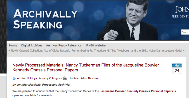 the mixed blessing of newly processed papers: the nancy tuckerman files of the jacqueline kennedy onassis collection at the jfk library (emotions by britney)